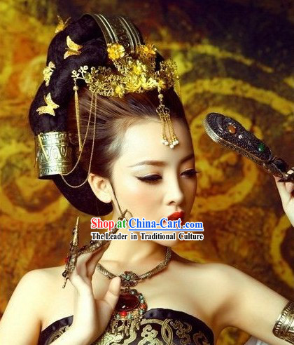 The golden headdress is another important component of Dunhuang dancer attire.