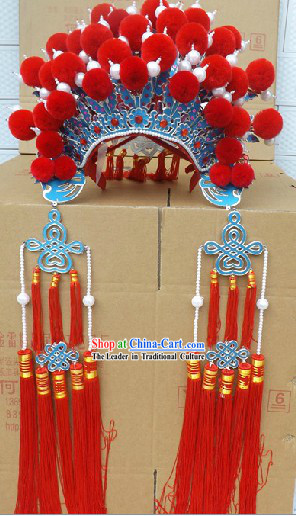 This picture shows the hats worn by men and women during a traditional Chinese wedding.