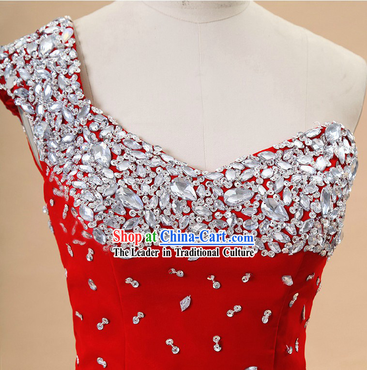 The color red symbolizes joy and passion, while the one-shoulder design adds a touch of sexiness and elegance.