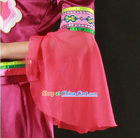 This dance costume and headdress are exquisitely designed, featuring bright colors and strong ethnic characteristics.