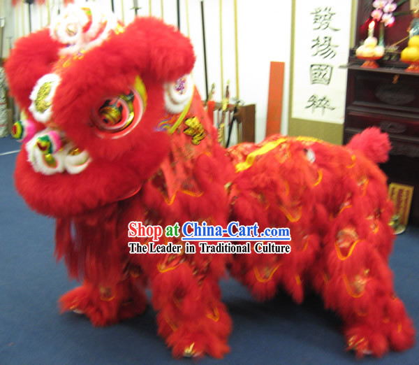 Delivery: 1-17 days FREE worldwide shipping Size: Size 3 which suits most adults (Size 1, 2, 4 are also in stock. Feel free to leave us a note about the size number you need when you order) Material: Top 100% natural long wool, high quality durable traditional fabrics and materials Dimension of Top handmade lion head: 30"x29"x29" Dimension of the lion tail: 98"x57" Material: Best quality natural wool, silk and bamboo Handicraft: This long history workshop has provided worldwide artists and dancers with top lion and dragon dancing costumes for over 120 years. This lion is Handmade by the finest traditional craftsmen of this workshop. Characters: 1. Lightweight, easy handle, very durable; 2. The eyes and ears are able to flap under your control; 3. Specially designed for the wedding celebration. Uses: 1. Wedding celebration; 2. Happy festival celebration; 3. Business opening celebration; 4. Top professional dancing competition; 5. Big business opening ceremony celebration; 6. Martial arts practice; 7. Display, decoration, collection; 8. Stage performance. This complete set of lion dancing costumes include all parts already. Besides, here are extra FREE gifts: 1. Lion dancing Performance Instruction DVD 2. Lion dancing Accompany Music CD 3. Traditional Silk Red Scroll which values $100 4. Two professional lion dancing belts for both dancers: