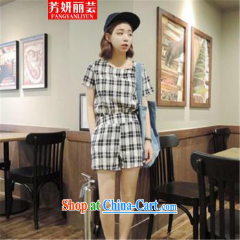 Speed Cayman 2015 summer new short-sleeved round-collar tartan shirt + Korean grid style shorts XL women mm thick and Beauty package 515 black-and-white grid XXXL