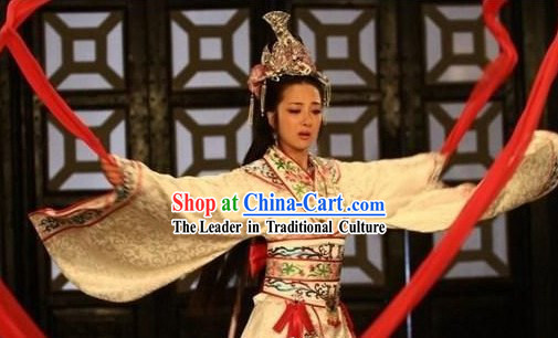This is a magnificent long-sleeved classical dance costume inspired by the goddess of the Lo River, showcasing the charm and historical significance of ancient Chinese culture.
