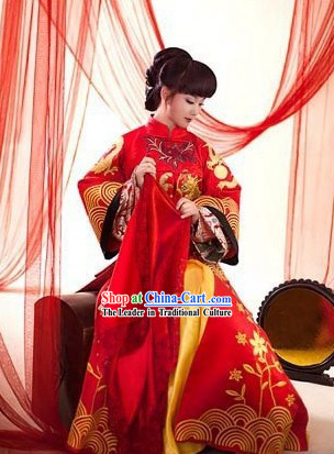In conclusion, this red Chinese classical wedding dress is an artwork that is full of meaning and value.