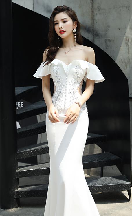 This type of wedding dress is typically worn during the wedding ceremony and represents the bride's beauty and purity.