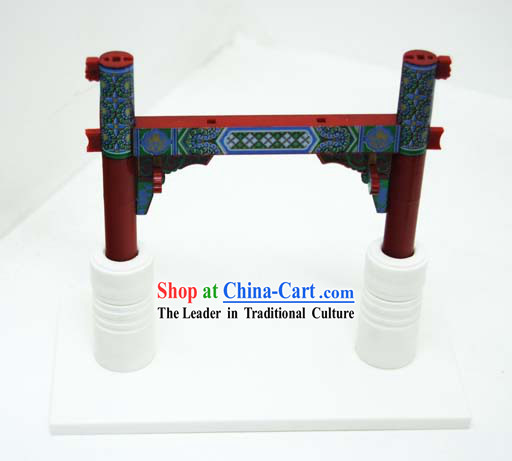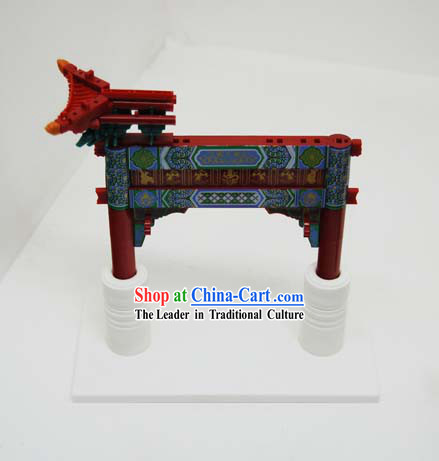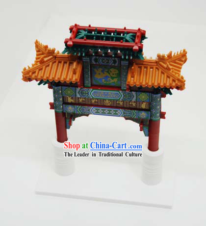 The wooden arch house model is a finely crafted piece that showcases the charm and uniqueness of traditional Chinese architecture.