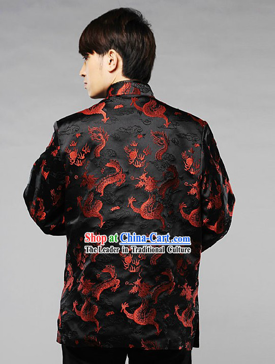 The traditional Chinese black dragon pattern shirt is a masterpiece of art.