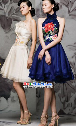 This evening dress uses exquisite embroidery techniques to skillfully incorporate the peony pattern into the design, making it both artistic and practical.