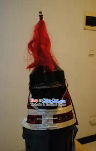 Its red and gold decorations give it a solemn and magnificent appearance, evoking images of brave and fearless generals on ancient battlefields.