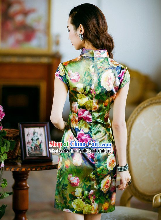 This traditional Chinese short flower cheongsam is a work of art full of historical significance and cultural connotations.