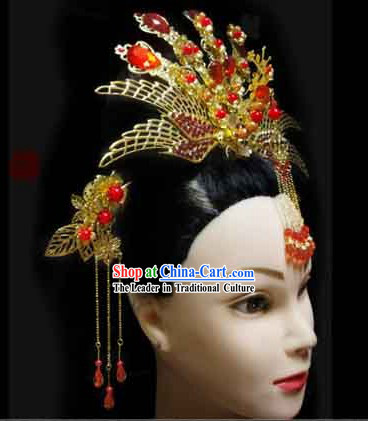 These headpieces are usually made of gold and red beads, decorated with various exquisite patterns and designs.