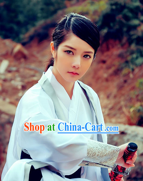 This is a white ancient swordsman costume, which represents the martial arts culture of ancient China.