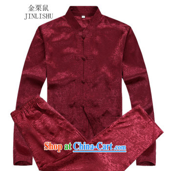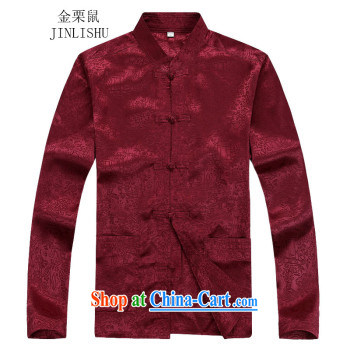 Item 165595 Chinese Traditional Suits for Men, Tang Suit, Sun Yat Sen Uniform keyword: The poppy the Mouse 2015 autumn new Chinese long-sleeved men's middle-aged and older men Chinese T-shirt Red Kit XXXL, the chestnut mouse (JINLISHU), online shopping