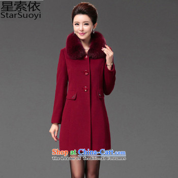 In accordance with the largest number of star women for winter coats of older gross? mother woolen coats that long coat female red聽star in 035 4XL, (starsuoyi) , , , shopping on the Internet