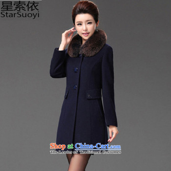Mrs and cashmere overcoat female woolen coat girl聽in the new winter 2015 long coats gross? For coats jacket fox gross blue聽 XL