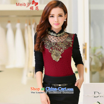 Meiby autumn and winter new to intensify the new large load lint-free warm lace shirt, forming the Netherlands female long-sleeved-semi-high collar large graphics thin Sau San shirt 1320 1320 plus black velvet聽4XL, of (meiby) , , , shopping on the Internet