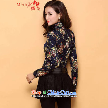Meiby autumn and winter new to intensify the new large load lint-free warm lace shirt, forming the Netherlands female long-sleeved-semi-high collar large graphics thin Sau San shirt 1320 1320 plus black velvet聽4XL