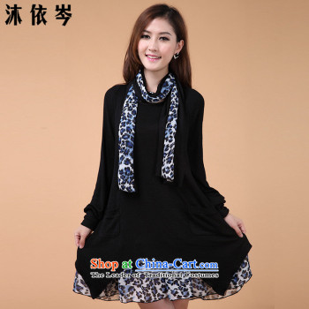 According to the Philippines 2014 autumn and winter new thick MM and indeed increase code loose leave two Leopard stitching solid knitted dresses female Y 129 black 3 XL