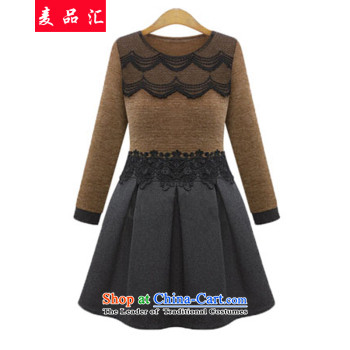 Xiang Jiang聽2015 extra thick mm autumn female new products to increase the number of loose dress thick sister 200 catties, forming the long-sleeved brown 2021 large skirt 5XL