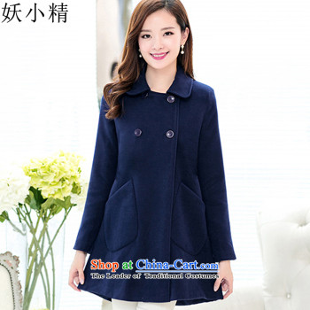Charlene Choi Tysan聽2015 Korean version of large numbers of ladies autumn and winter new fat mm to cloak gross lapel jacket is warm, double-a wool coat Navy Blue聽2XL