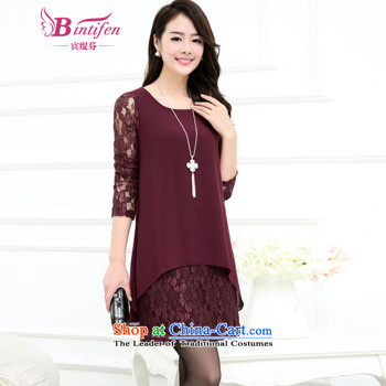 Mephidross economy honey's code female summer 2015 new lace stitching shirt thick MM Korea and indeed XL video thin shirt wine red 4 XL 175 Jack left and right