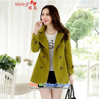 Optimize the聽2015 autumn and winter new larger female Stylish coat female Korean citizenry sweet candy colored elegant in Sau San long thick a wool coat female聽3XL green