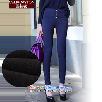 Morning to 2015 autumn and winter new Western Wind jeans larger female plus extra thick elastic castor trousers Wool Pants thick MM pencil dark blue trousers聽5XL_ recommendations 180-200 catties_