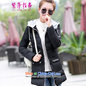 2015 winter clothing new Korean version of large numbers of ladies thick MM loose, Hin thin, thick cotton winter in sister thick long thick Korean cap down jacket Black XL