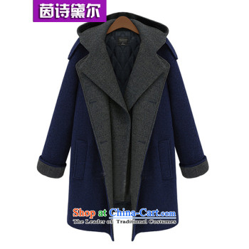 Charlene Choi Tysan聽2015 Korean version of large numbers of ladies autumn and winter new fat mm to cloak gross lapel jacket is warm, double-a wool coat Navy Blue聽2XL