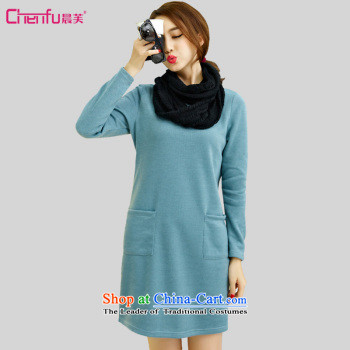 Elisabeth Kosovo-Large 2015 women fall new stamp of long-sleeved collar knitting thick MM stitching forming the Sau San long-sleeved dresses 2067 porcelain stamp blue 2XL recommendations 120-130 catty