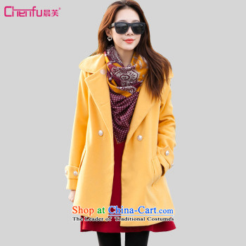 In accordance with the court on the聽2015 winter in new long-ni gross so Sau San women cashmere overcoat jacket female聽YSG3308聽turmeric yellow聽XL
