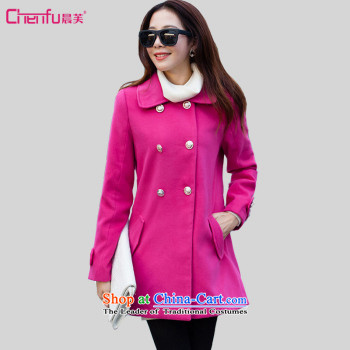 Gil Wo Ika red jacket girl in gross? Long autumn 2015 new lapel cashmere overcoat Sau San female pure color woolen coat pink聽M