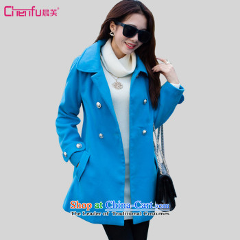 Gross coats women ROWILUX? 2015 winter new double-dong woolen coat cashmere overcoat so gross jacket female M Blue