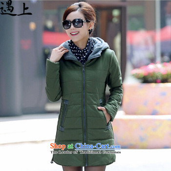 Yeon-ju Chiu replacing to increase women's code 200 catties thick sister thick cotton clothing large mm coat cotton coat thick girls' Graphics thin green 5XL
