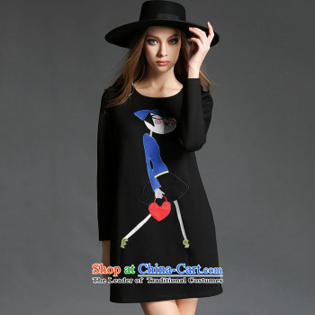 Rui poem m high-end large European and American Women's code load to fall more winter clothing thick woman video thin to intensify the skirt of autumn in the cartoon catty 200_ long-sleeved black round-neck collar聽4XL