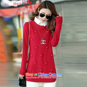 Maximum number of women to intensify the autumn and winter new stylish shirt collar workers in Korean long leave two pieces of knitted shirt, forming the hedging long-sleeved sweater聽聽3XL, red of 6209 (meiby) , , , shopping on the Internet