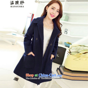 Charlene Choi Tysan聽2015 Korean version of large numbers of ladies autumn and winter new fat mm to cloak gross lapel jacket is warm, double-a wool coat Navy Blue聽2XL