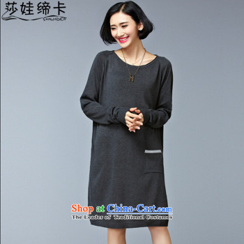 Europe feelnet fall and winter new thick mm larger female graphics thin large code skirt long-sleeved larger dresses 132 large gray code 6 XL