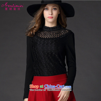 Golden Harvest large honey economy women autumn and winter to intensify the lace stitching the lint-free long-sleeved T-shirt, forming the Netherlands聽1228聽Black Large Code 4XL around 922.747 175