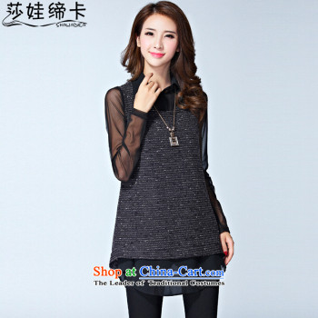 Gangnam-gu聽 2015 autumn and winter taste new larger female to intensify the skirt wear long-sleeved shirt MM thick stitching leave two Knitted Shirt black聽XXL recommendations 120-140 catty