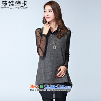 Hee-M 2015 autumn and winter new products to increase women's code, Hin fat mm thick, thin, forming new long-sleeved sweater shirt thick sister Sau San Ladies Sandals Gray聽2XL