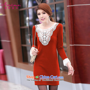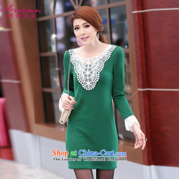 Overgrown Tomb economy honey population to increase women's code thick mm2014 autumn and winter load new lace stitching plus lint-free long-sleeved video thin dresses聽1703聽Black Large code plus lint-free thick, 3XL Overgrown Tomb Economy (MENTIMISI honey)