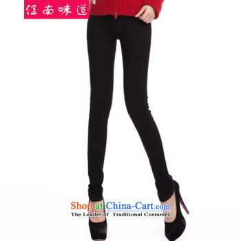 Gangnam-gu large 2015 taste women Fall_Winter Collections Korean to intensify the thick MM thick elastic waist-plus jeans female 163 Black + lint-free 4XL recommendations 160-180 catty