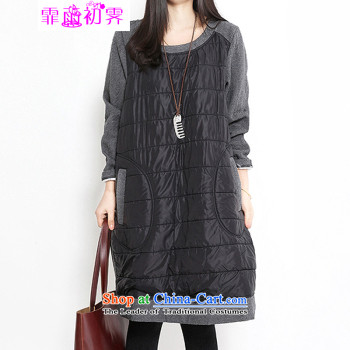 The beginning of the rain. Arpina ji 2015 autumn and winter new Korean version of large numbers of ladies round-neck collar clip cotton stitching thick long-sleeved dresses 597 gray聽XL, Fei Yu Ji (fei apr early la pluie 猫) , , , shopping on the Internet