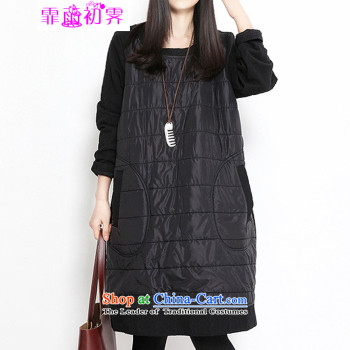 To Van Gogh figure for autumn and winter 2015 new Korean version of large numbers of ladies thick sister plus lint-free Thick coated dresses聽D8084 female聽black A聽XXXL