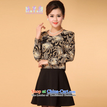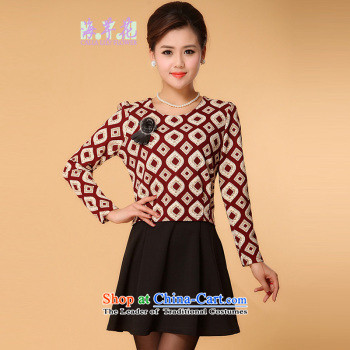 The sea route take the Korean version of the video coltish waist round-neck collar elegant stamp forming the basis of the spring and autumn of Sau San wear dresses 5N4214 code orange small square 2XL