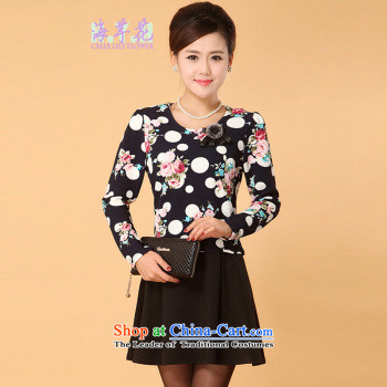 Billion gymnastics  grand autumn 2015 code T-shirts new Korean version long-sleeved T-shirt Sau San video female thin ethnic stamp forming the royal blue shirt M
