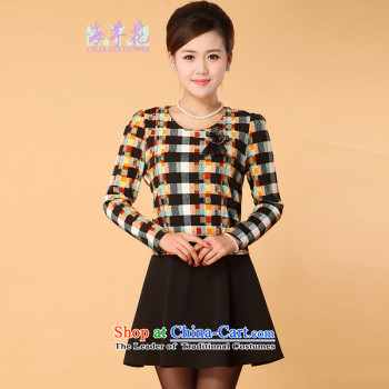 Create the  2015 autumn billion new Korean version of large numbers of ladies OL Drop-Needle LS and skirts, forming the basis of Sau San package female high collar G8102 black XXL