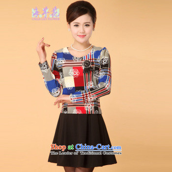The Director of the women's extra-thick mm2014 autumn and winter load new Korean Modern British Grid Sau San video coltish waist strain the skirt 3100 Blue 4XL