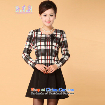 The line takes the Code women's clothing spring and new Korean video thin thick mm grid stamp small lapel dress, solid through 2 - 3 X black-and-white, 3 XL